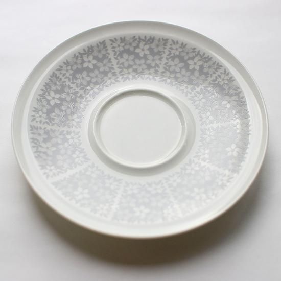 フィンランド語で"レース"を意味する「pitsi」は、細かな花柄をあしらったデザインです。夜の大人のお茶タイムに似合う、とても上品で細やかな印象です。色はグレーとなります。